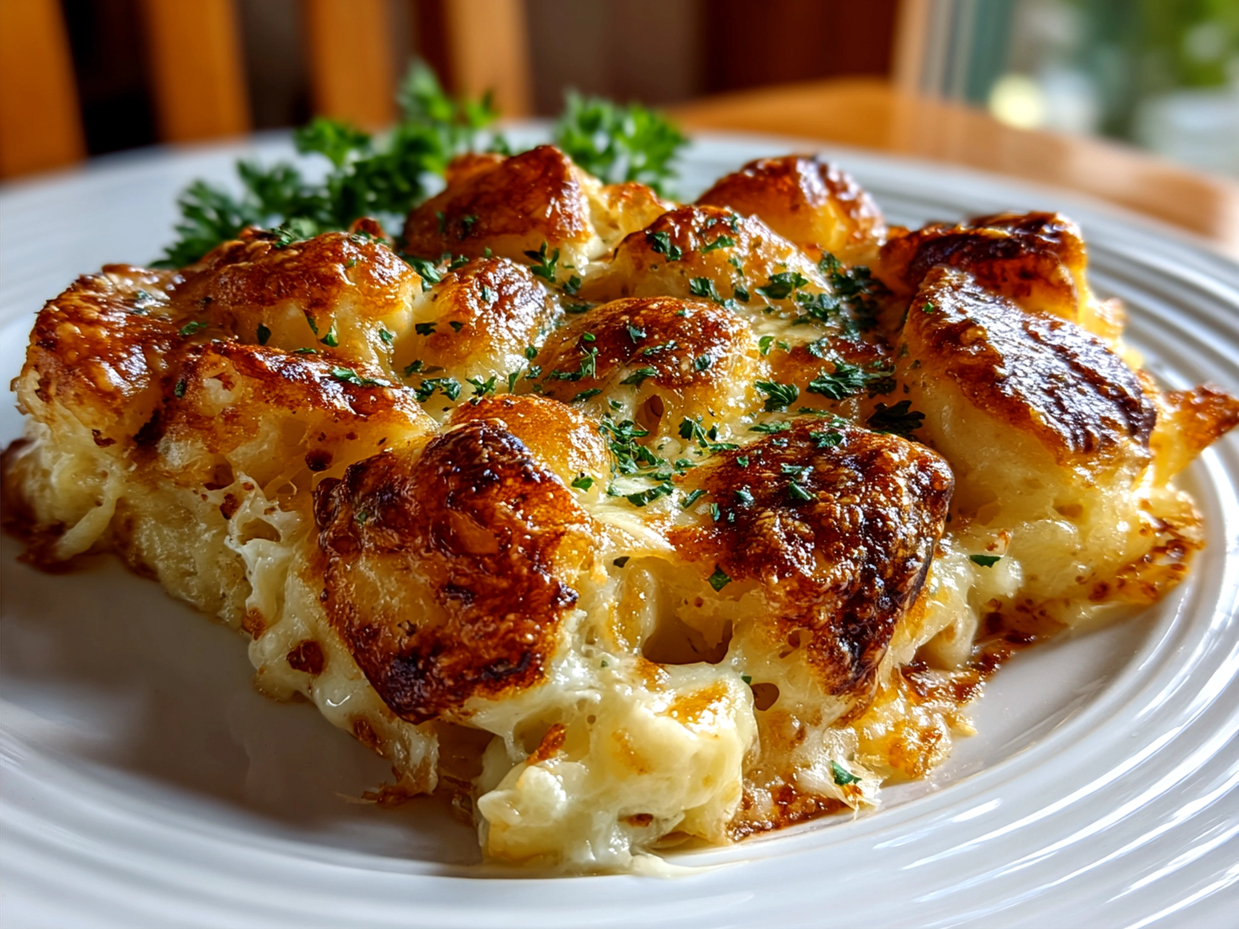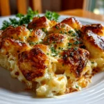 This Baked Cheesy Dumpling Casserole features tender dumplings baked in a rich, creamy cheese sauce—perfect for a comforting family dinner.