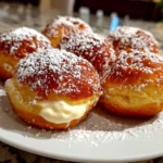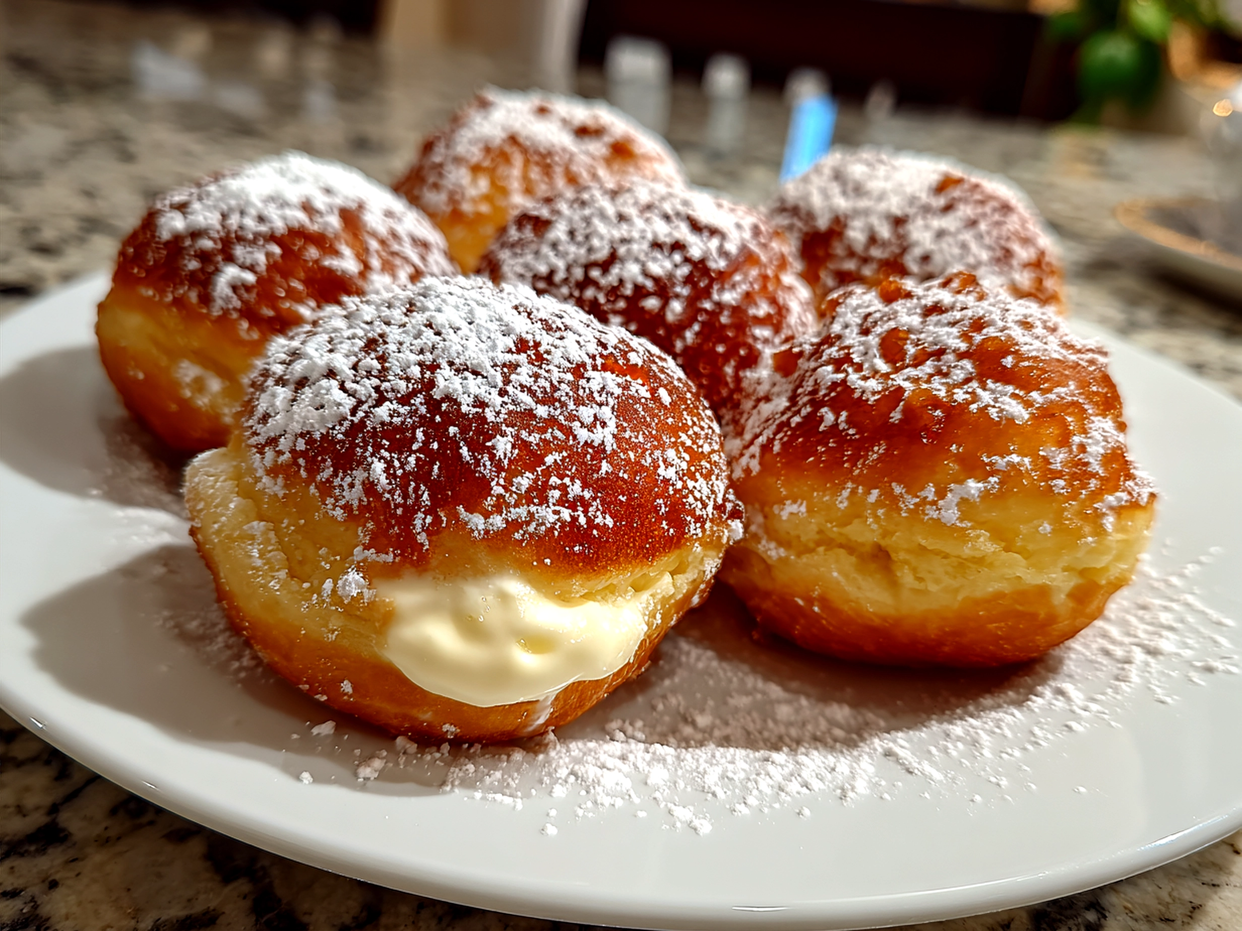 Bomboloni alla Crema are Italian cream-filled doughnuts, delightfully fluffy and fried to golden perfection, then generously filled with rich pastry cream for a decadent treat.