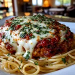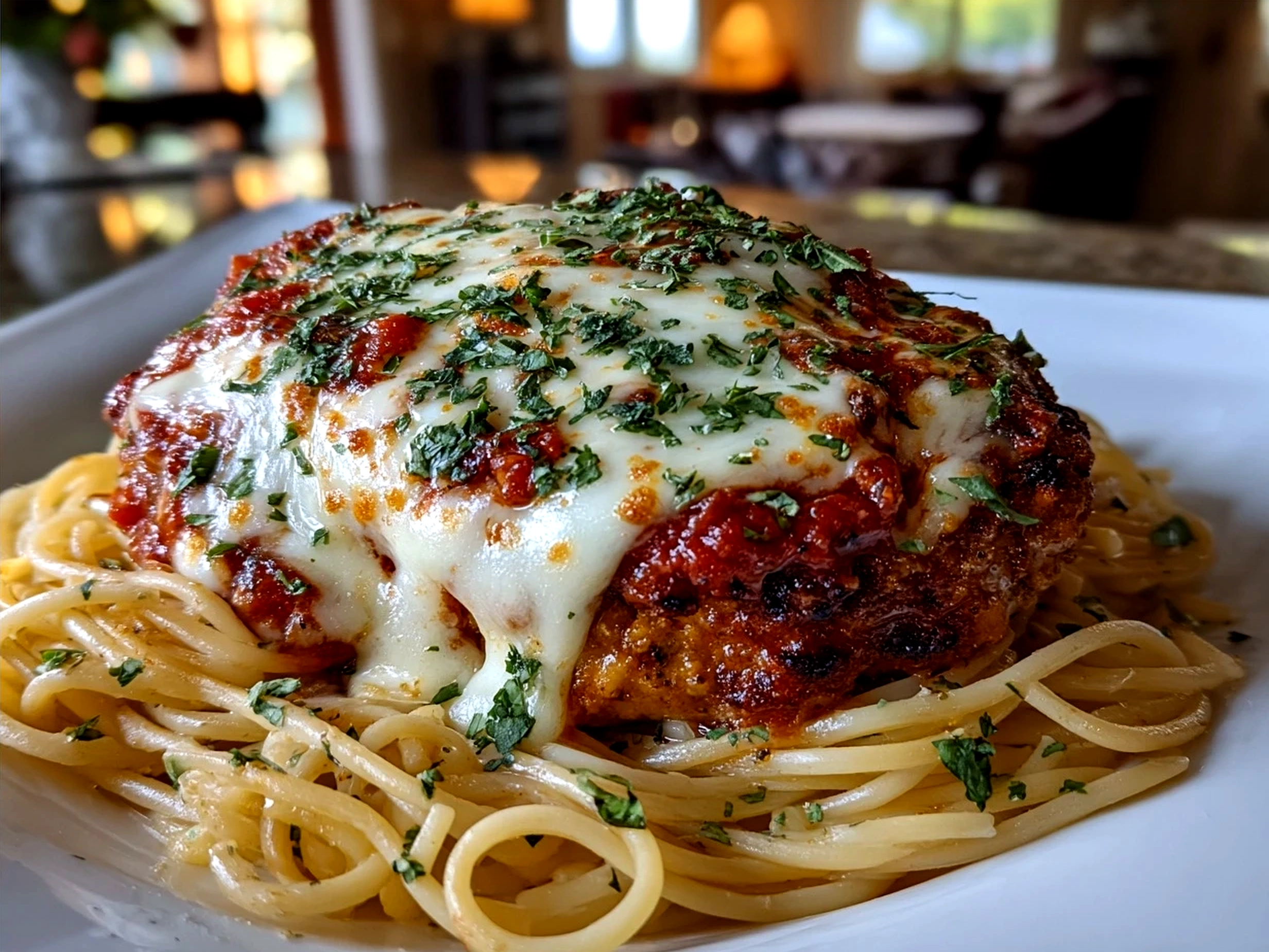 Chicken Parmesan is a classic Italian-American dish featuring breaded chicken breasts topped with marinara sauce and melted cheese, perfect for a comforting dinner.
