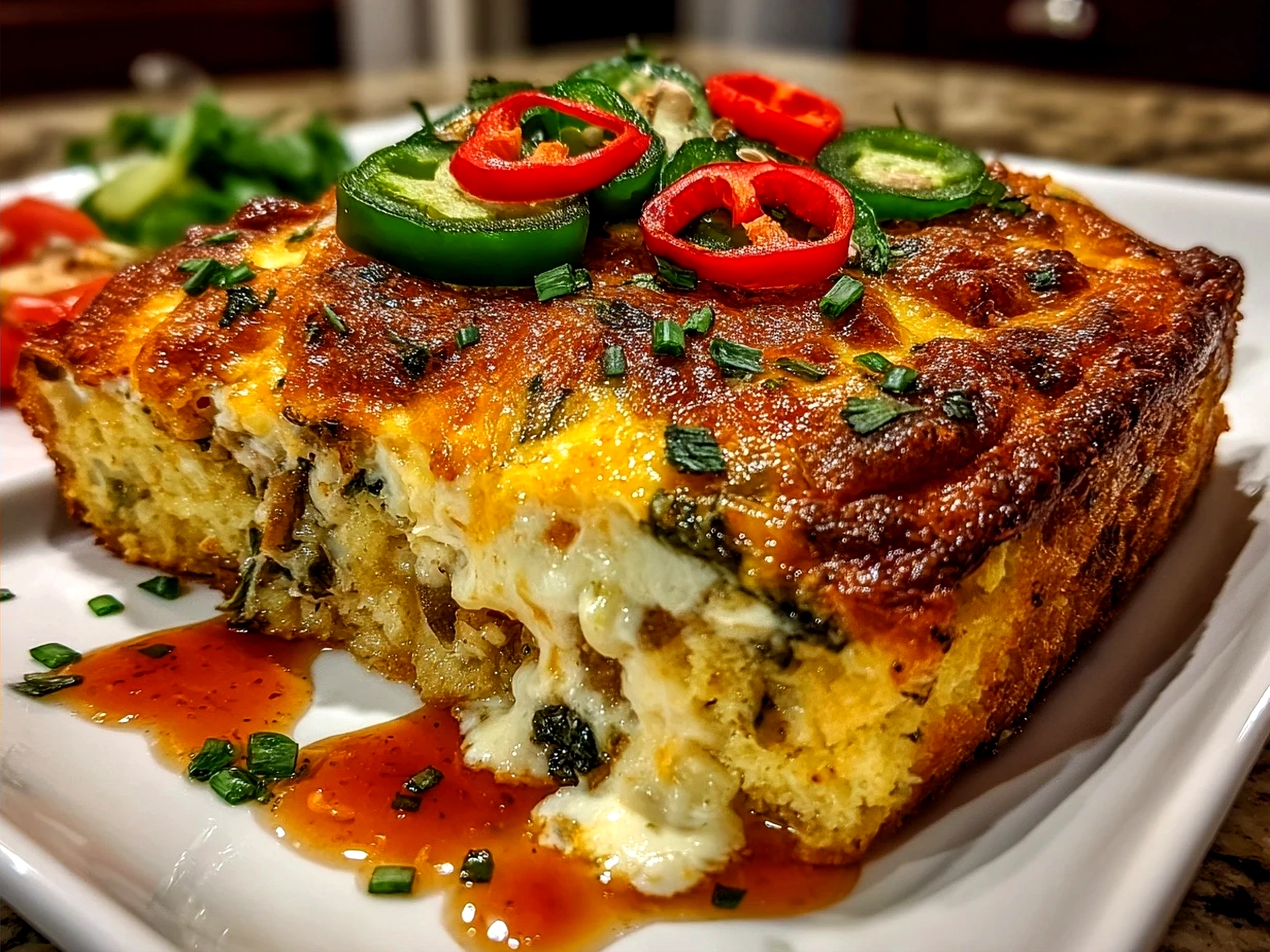 A comforting Mexican-inspired casserole featuring roasted poblano peppers, cheese, and a flavorful egg batter, perfect for a hearty family meal.