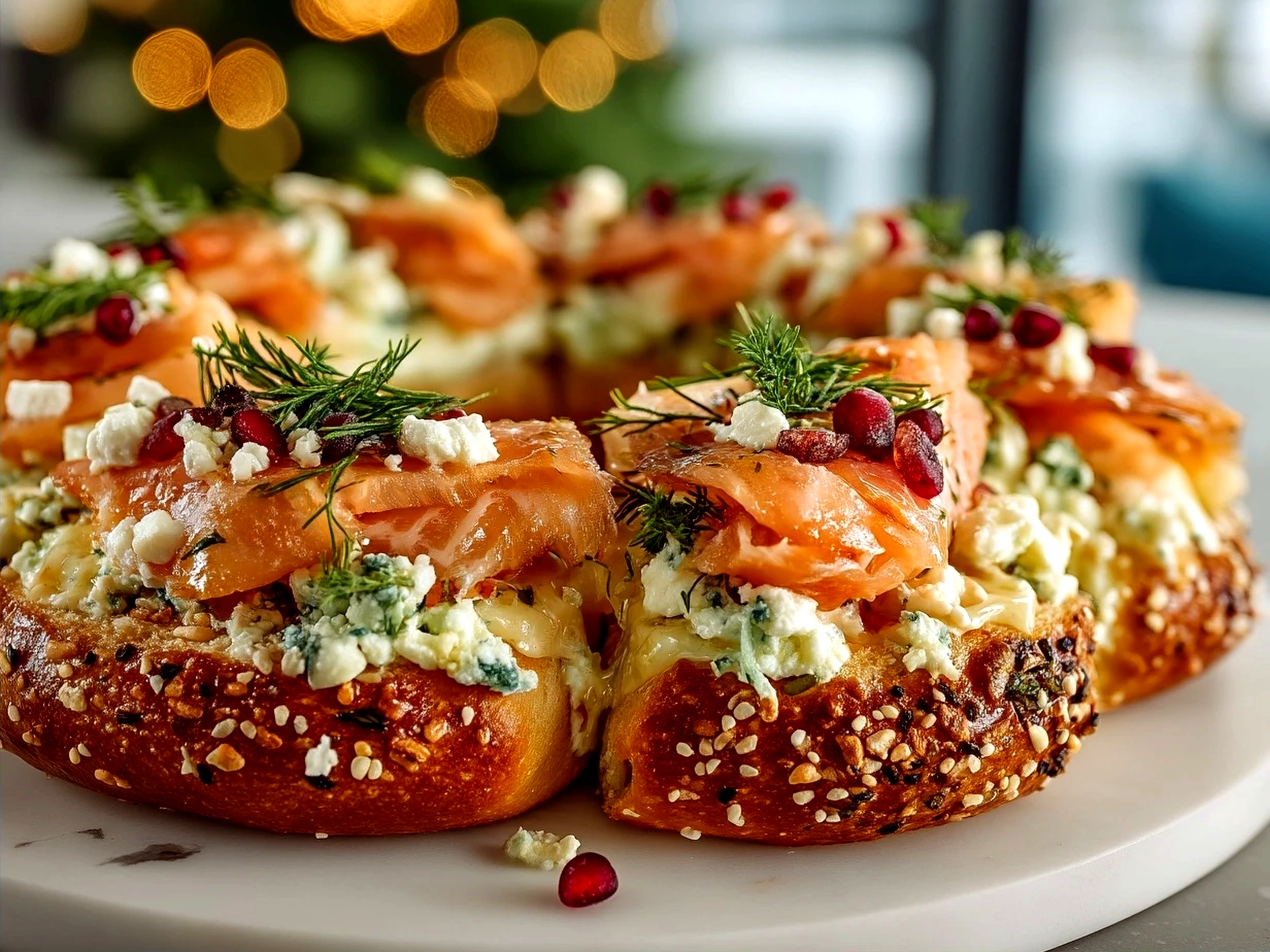 Celebrate the holidays with this festive Christmas Smoked Salmon Bruschetta Wreath, combining fresh bruschetta toppings with savory smoked salmon arranged beautifully in a wreath shape.