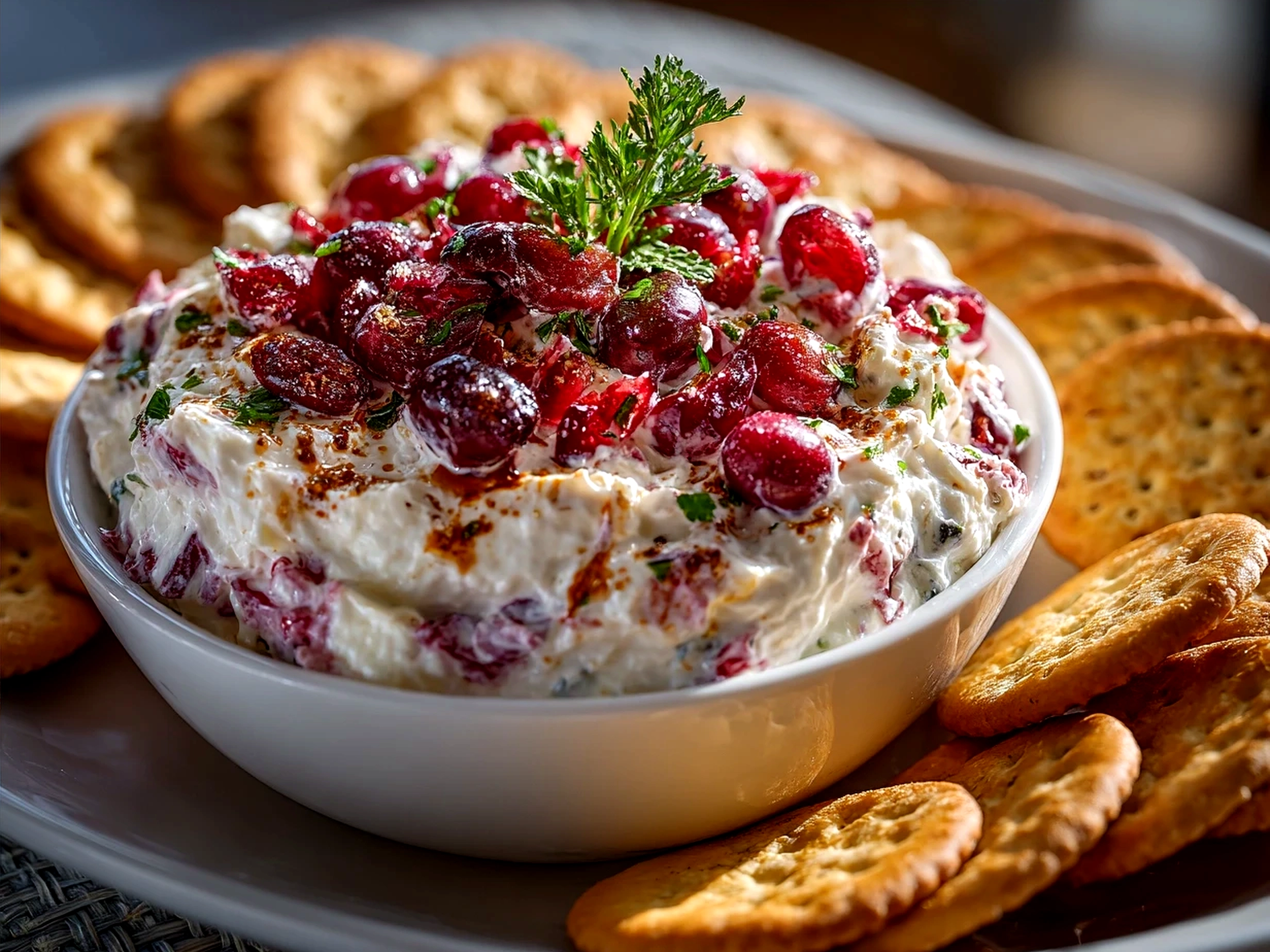 This Cranberry Whipped Feta Dip with Crackers is a tangy and creamy appetizer perfect for holiday gatherings or everyday snacking, combining smooth whipped feta with vibrant cranberry notes.
