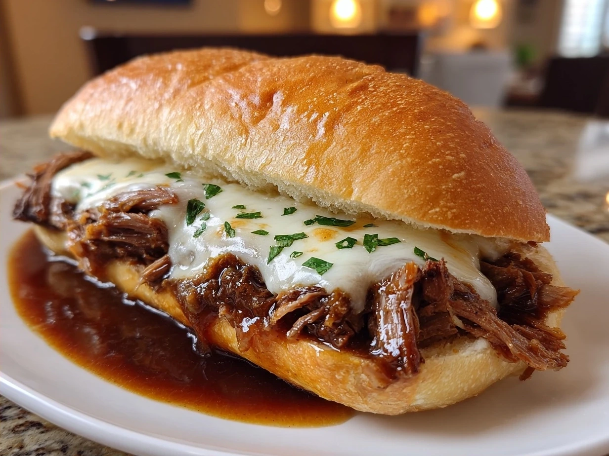 - Assemble and melt cheese: Pile shredded beef on the toasted buns and top with provolone slices. Cover loosely with foil for a minute or two so cheese melts perfectly.