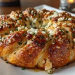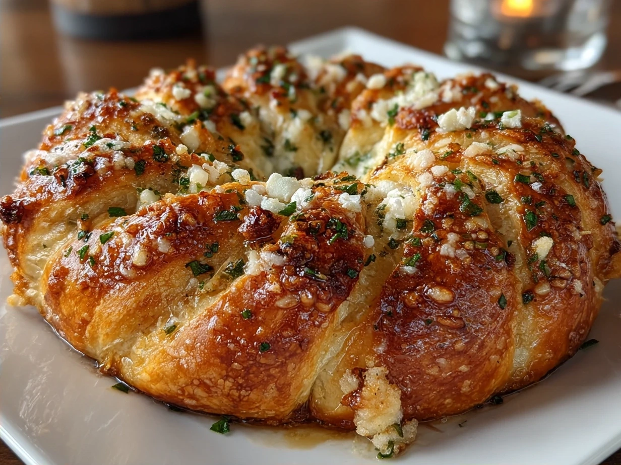 This Garlic Bread Wreath with Baked Brie is the perfect appetizer for holiday gatherings or any special occasion. Soft, garlicky bread surrounds a warm, gooey brie cheese, creating a show-stopping dish that’s sure to impress.
