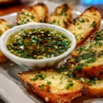A simple and flavorful garlic olive oil dip perfect for bread, veggies, or drizzling over dishes, combining rich olive oil with aromatic garlic.