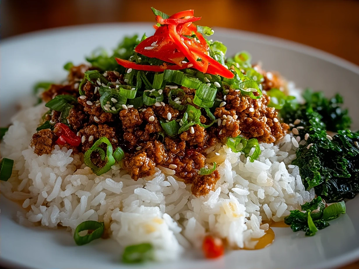 This flavorful Ground Turkey Teriyaki Rice Bowl features tender turkey cooked in a savory homemade teriyaki sauce, served over steamed rice and topped with fresh veggies for a wholesome meal.