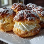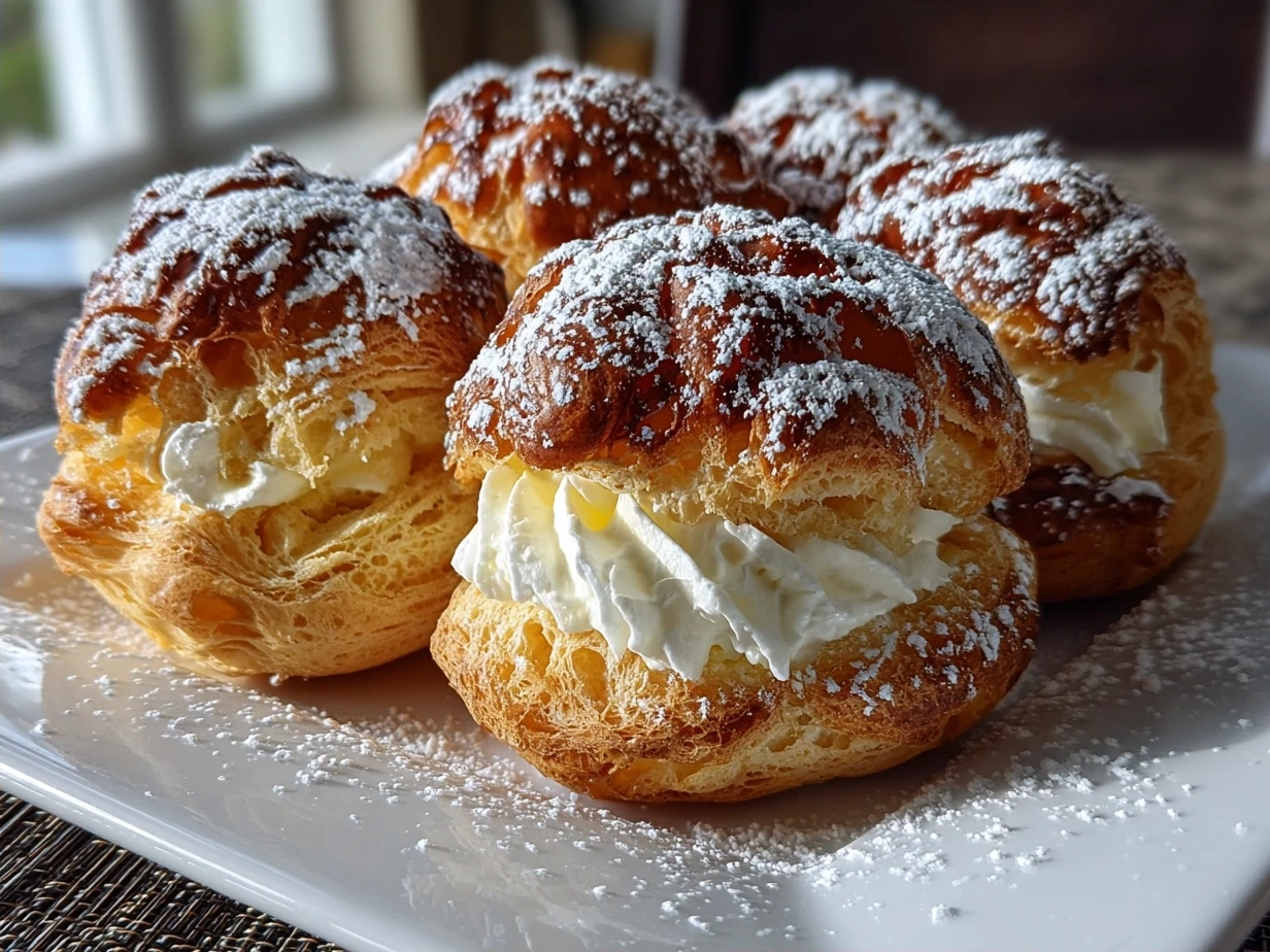 Delight in light and airy homemade cream puffs filled with a rich vanilla custard, perfect for an elegant dessert or special treat.