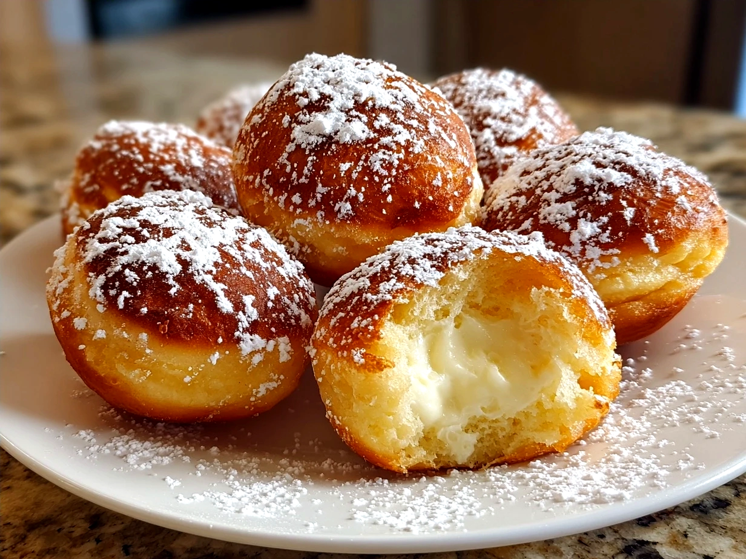Italian Bomboloni Cream Donuts are fluffy, fried doughnuts filled with rich vanilla custard, offering a delightful balance of light texture and creamy sweetness perfect for dessert or a special treat.