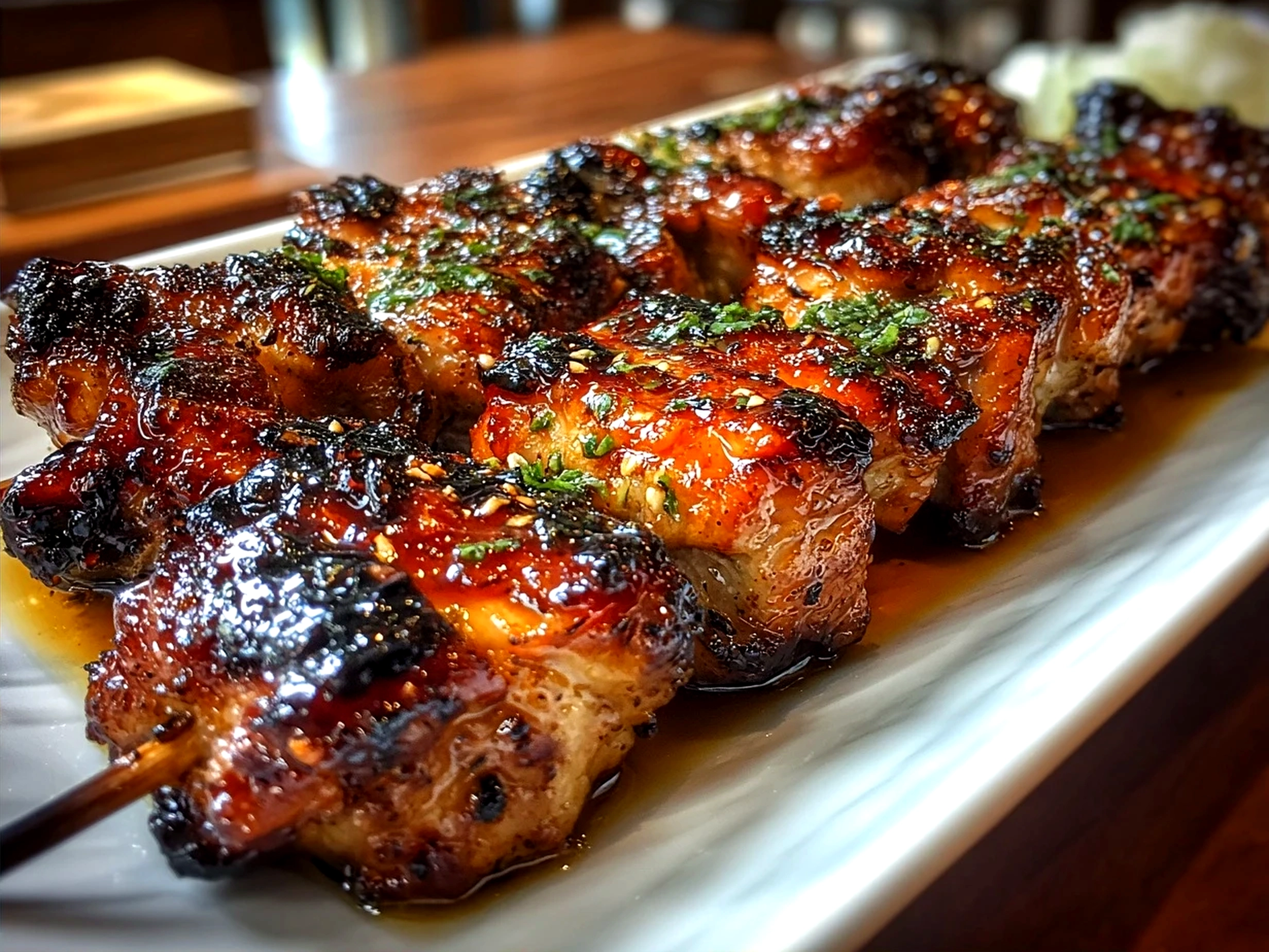 Enjoy tender and flavorful Japanese Yakitori Grilled Chicken skewers, marinated in a savory-sweet sauce and grilled to perfection for a delicious appetizer or main dish.