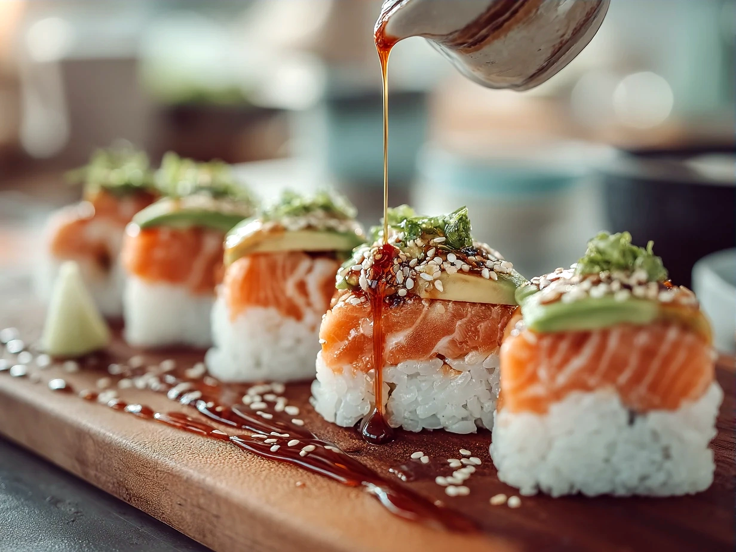 During summer, I swap in cucumber wrapped sushi rolls to refresh the dish according to seasonal vibes (found a great inspiration here for cucumber wrapped sushi roll). I like adding a few sesame seeds on top for texture and chatting with my crew about how food can nourish us even on the busiest days.