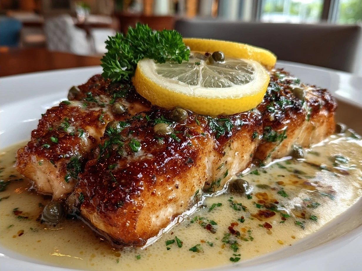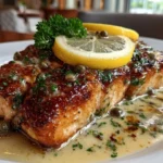 Salmon Piccata is a zesty, buttery dish featuring tender salmon fillets in a tangy lemon-caper sauce, perfect for a quick and elegant dinner.