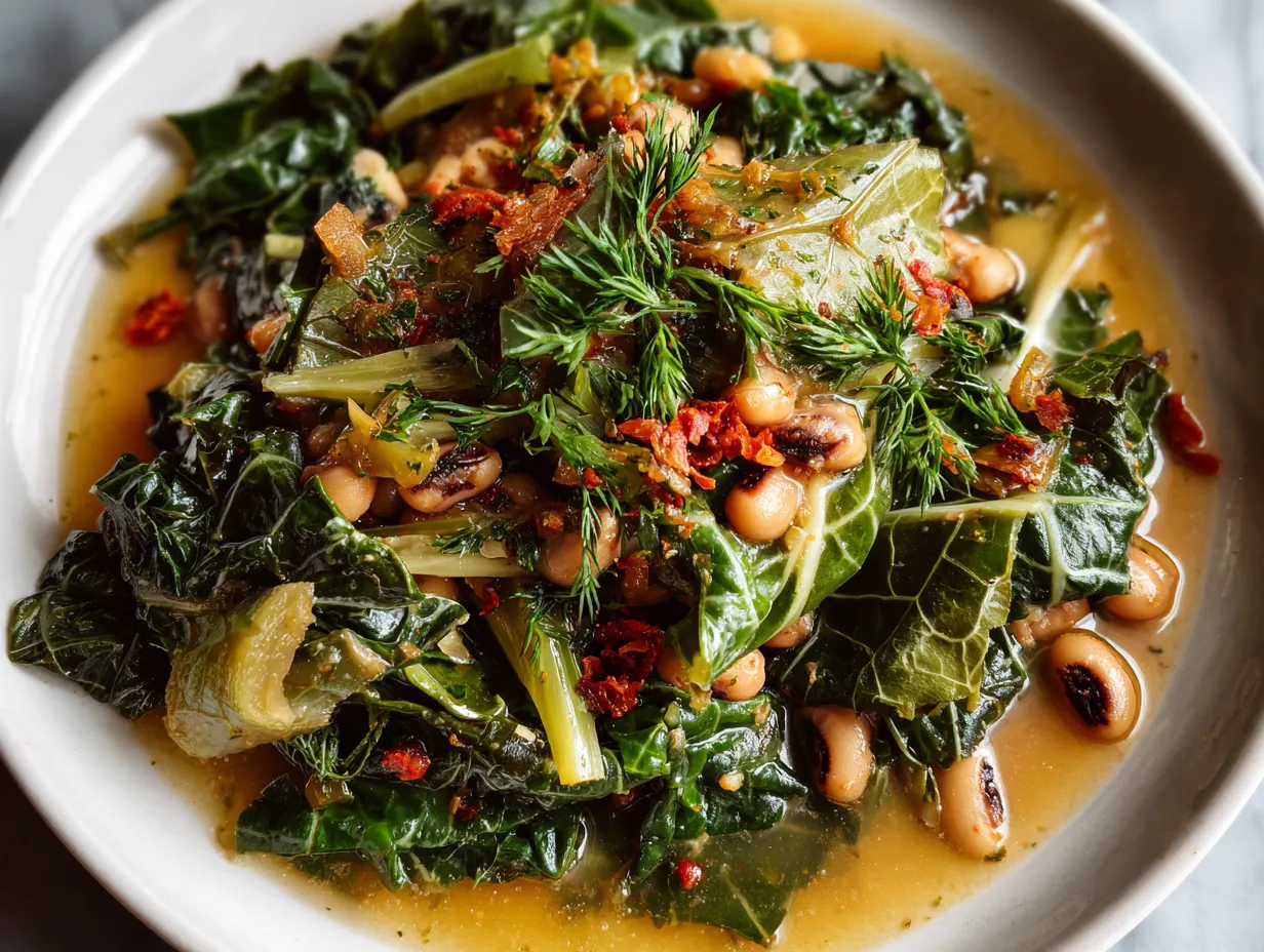 This Southern Black-Eyed Peas with Collard Greens recipe is a hearty and flavorful dish, perfect for a comforting and nutritious meal. Enjoy a taste of the South with this classic combination!