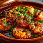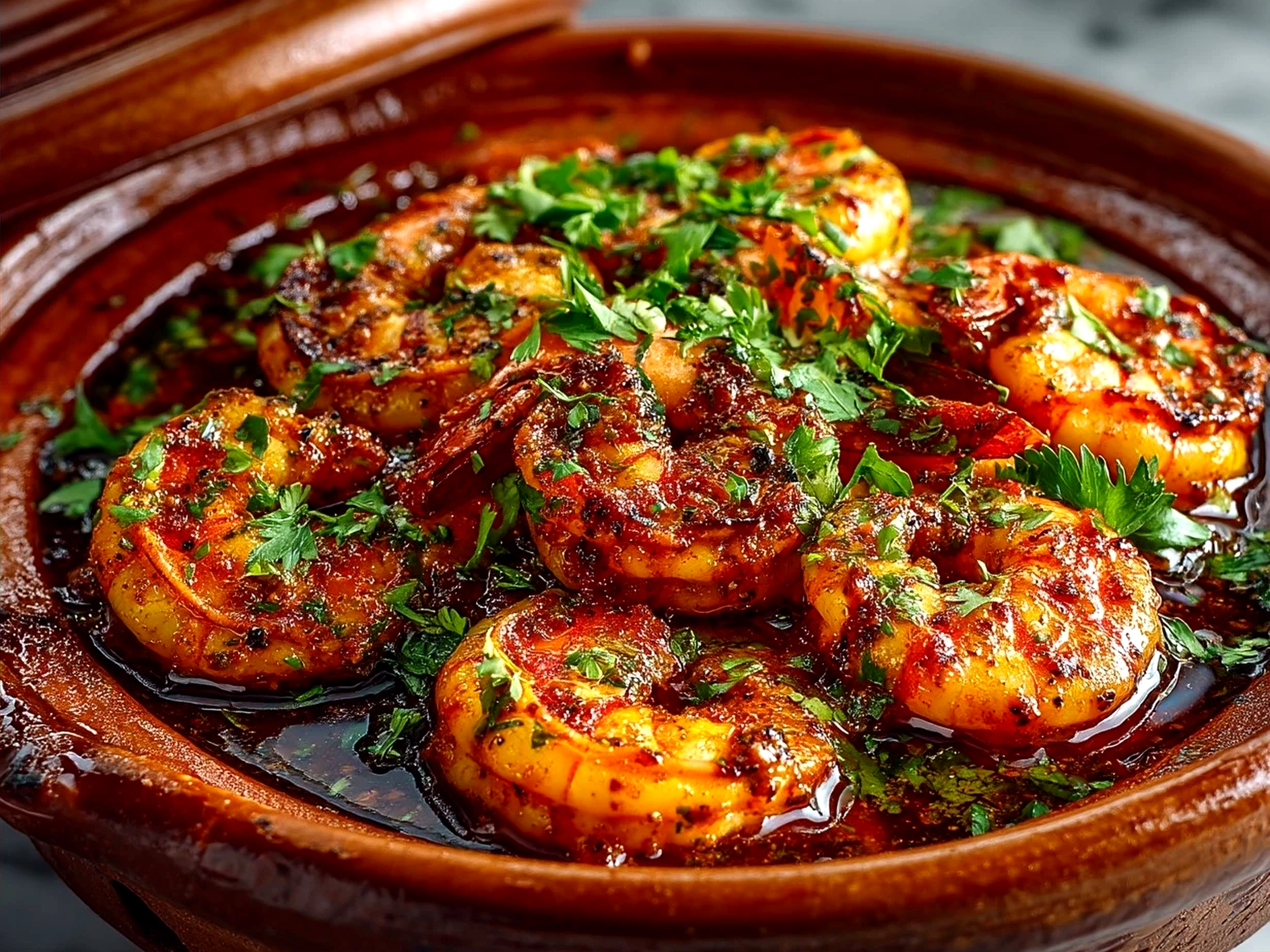 This Spicy Moroccan Shrimp Tagine features succulent shrimp simmered in a fragrant, spicy tomato and preserved lemon sauce, infused with traditional Moroccan spices for a vibrant and flavorful meal.