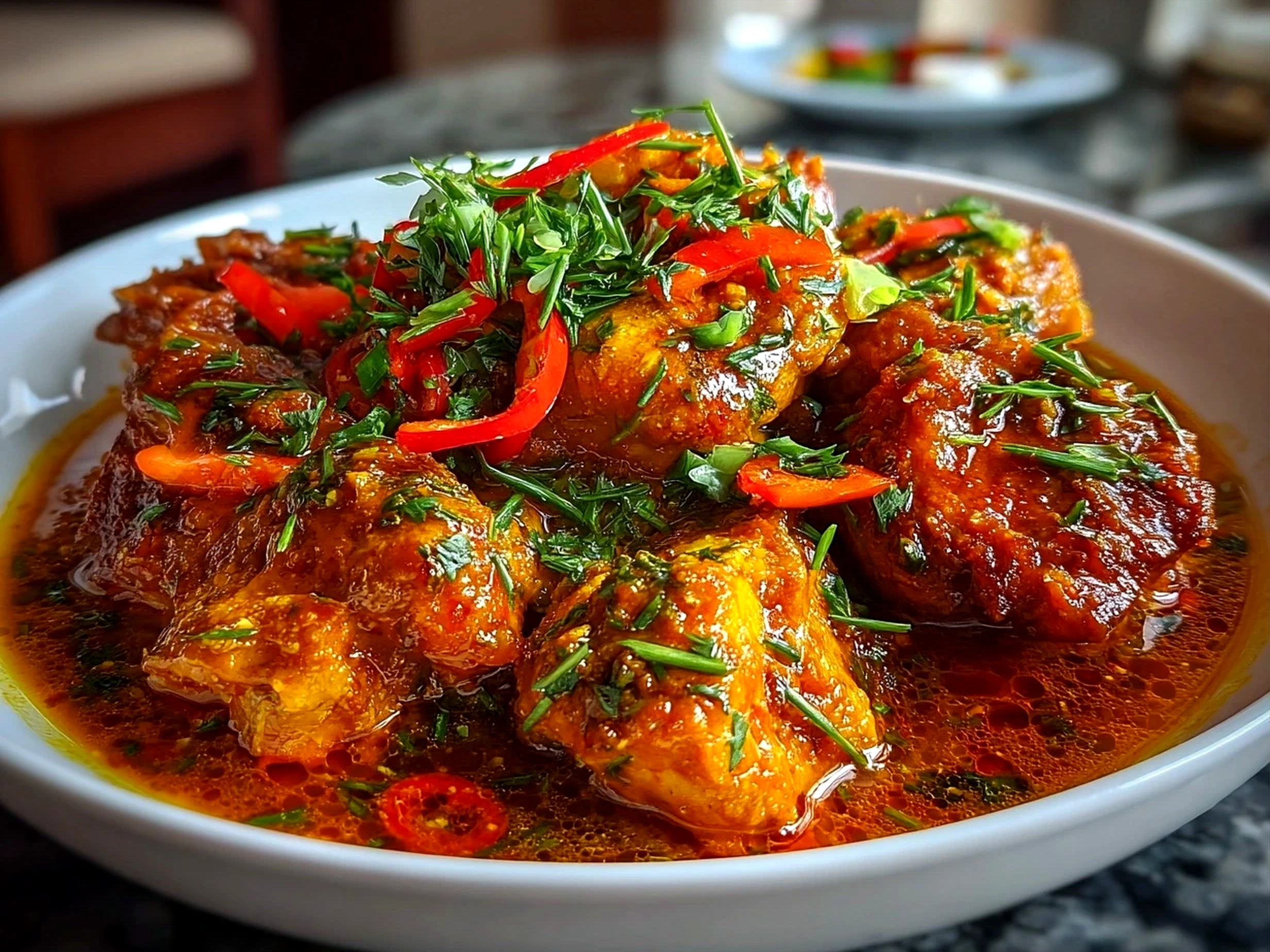 A flavorful and fiery Nigerian chicken stew rich with tomatoes, peppers, and warm spices, perfect for a hearty and comforting meal.