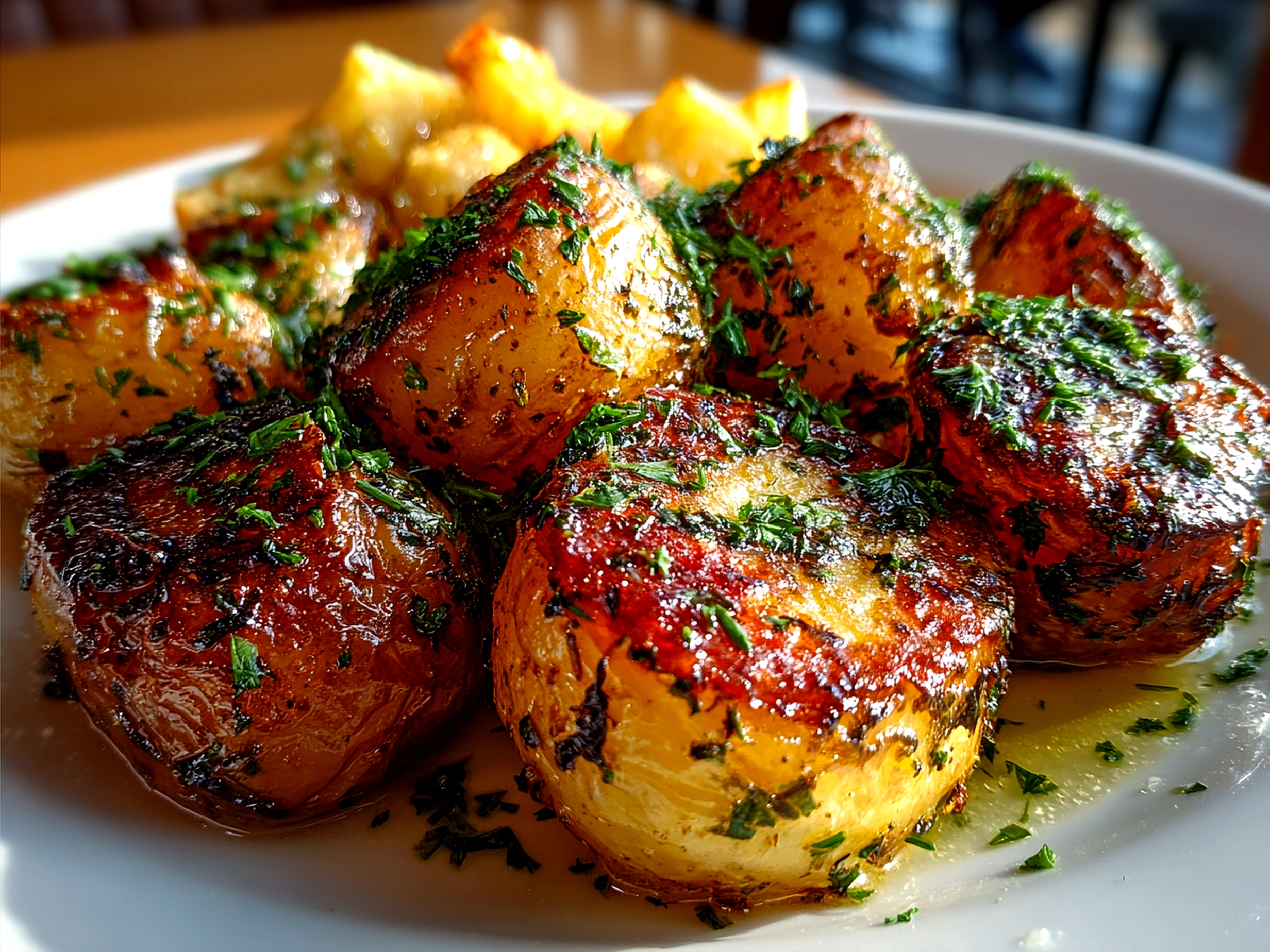 Steakhouse Potatoes Romanov are crispy, golden-brown skillet potatoes seasoned with garlic and herbs, perfect as a hearty side dish to your favorite steak or grilled meats.