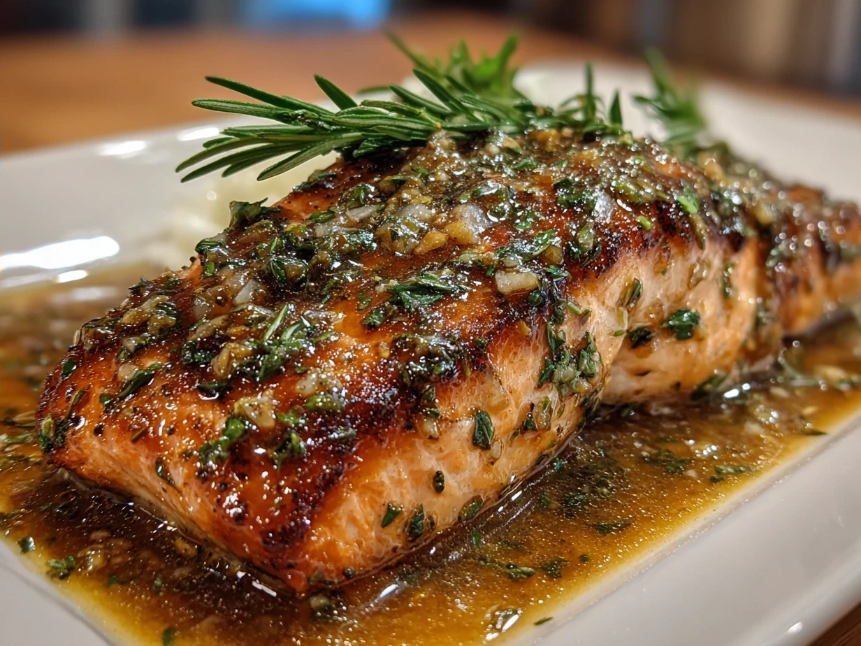Delicately poached salmon glazed with a rich tahini and honey sauce, offering a creamy, naturally sweet, and nutritious meal perfect for a healthy dinner.