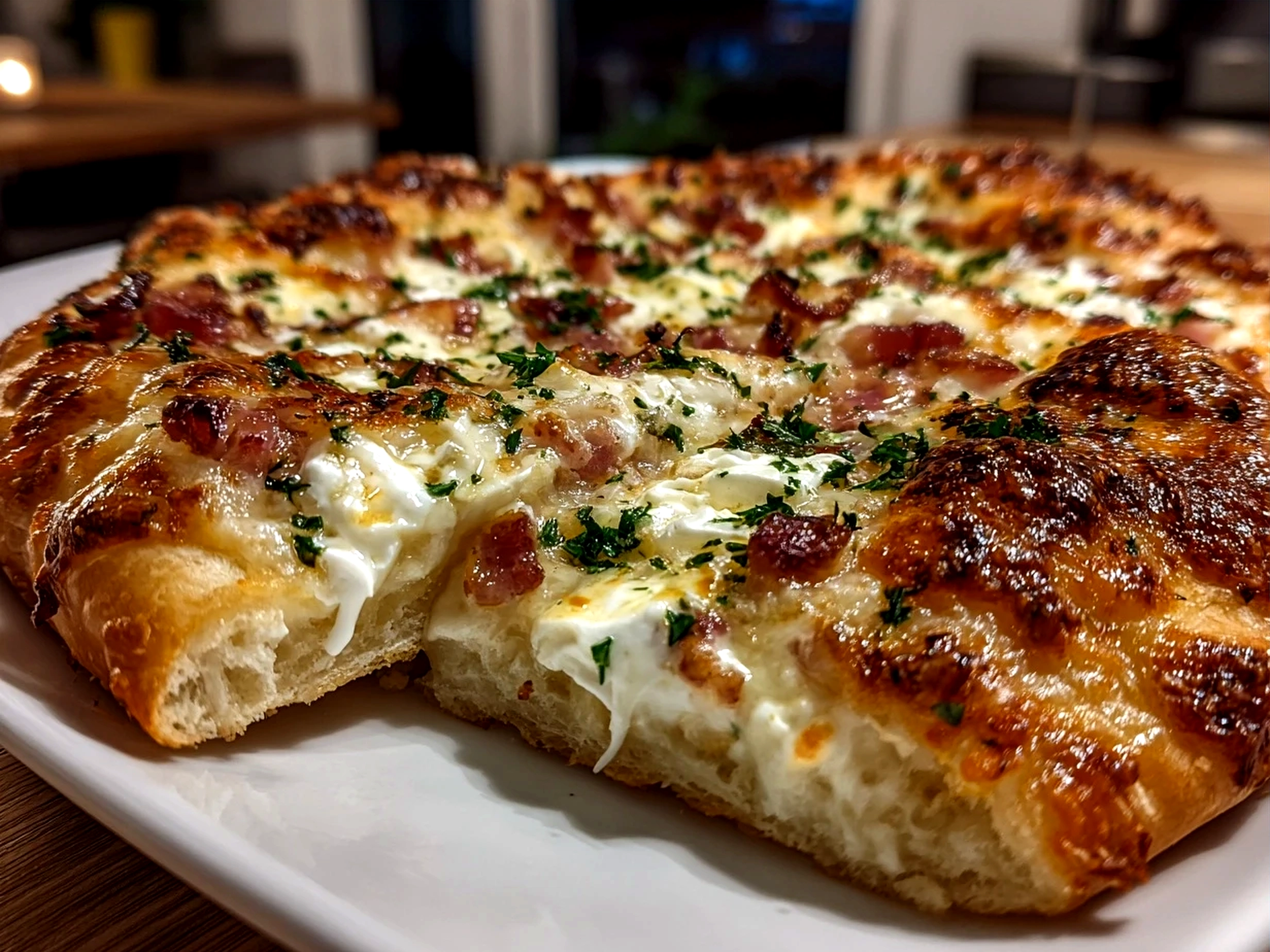 A creamy and flavorful white pizza featuring a garlic-infused olive oil base topped with mozzarella, ricotta, and fresh herbs for a delicious twist on classic pizza.